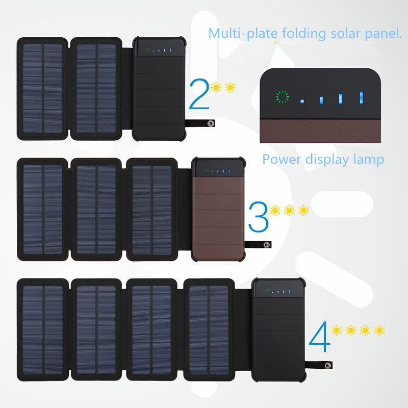 Power capacity: 8000 mAh (two solar panels), 8000 mAh (three pieces too, 8000 mAh (four solar panels)